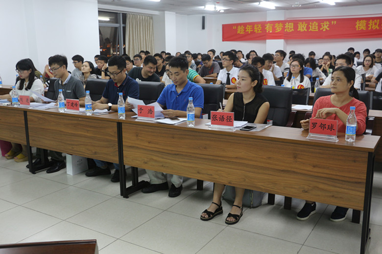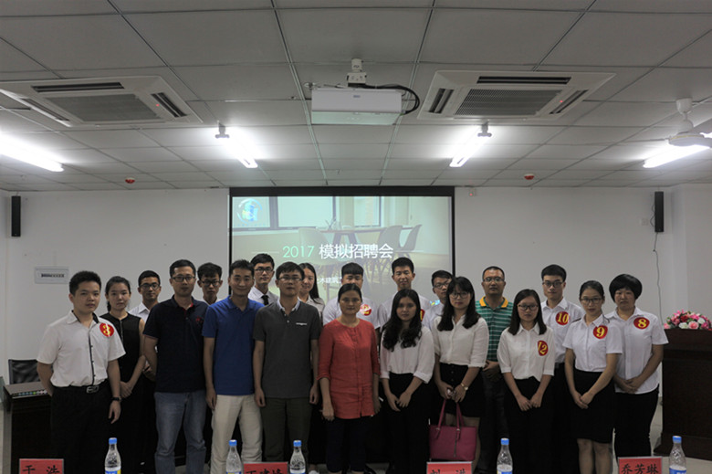 2017年5月19日晚7点30分,研发楼510灯火辉煌、人头涌动,sjb世俱杯官方网站模拟招聘会决赛战斗的号角即将吹响。出席本次活动的嘉宾有碧桂园人力资源部经理刘进、人力资源部高级主管乔芳琳,信息产业电子第十一研究院科技工程股份有限公司海南分公司副院长丁建峰、办公室主任张语径,恒大地产集团海南有限公司人力资源部人事专员于浩以及学院党委副书记罗邻球、就业辅导员詹达夫老师。