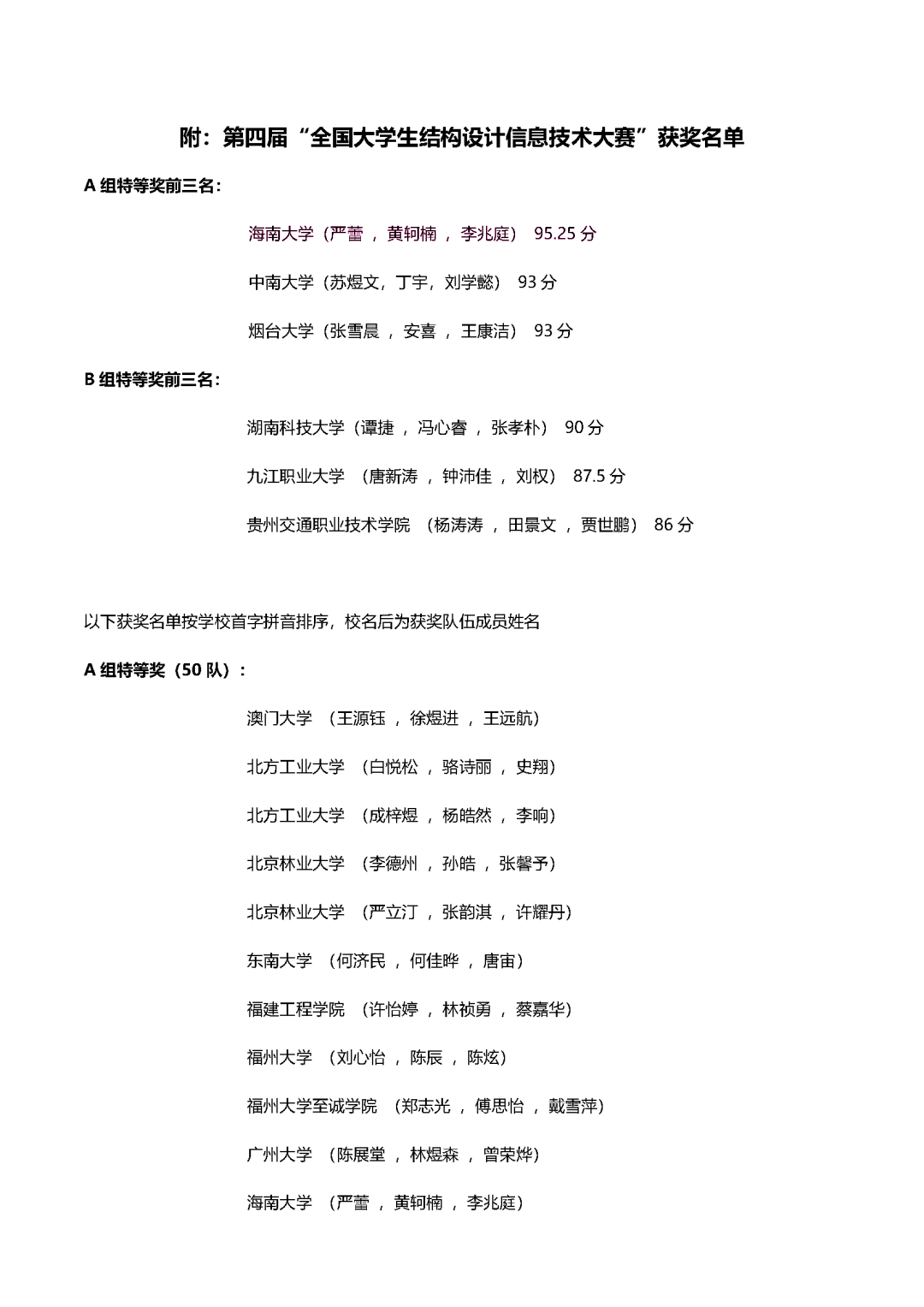 竞赛组委会公布获奖名单截图