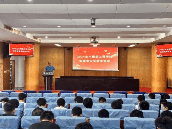 实验室与设备管理处谢天宇老师为在座师生播放了实验室安全教育警示片。随后,杨海峰副处长简要介绍了近期学校实验室安全工作基本情况,指出实验室安全不仅关乎个人安危,更关系到整个实验室的运行和科研工作的顺利进行,建立健全的安全管理制度、加强监督检查、树立安全意识是确保实验室安全的三大关键措施。