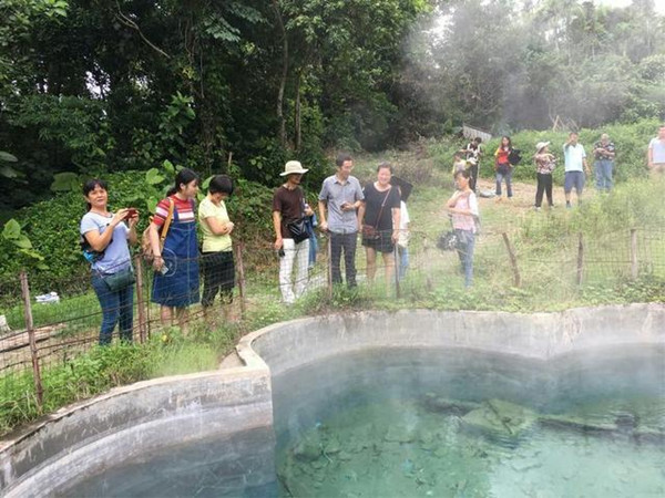 世俱杯博士党员团队与美国纽约州立大学教授Refaat Hussein组成志愿专家组,在保亭县水务局副局长陈宗耀、县七仙岭温泉基础公司相关负责人的带领下,现场考察了七仙岭温泉眼、酒店温泉设施、温泉调节池以及县城污水处理厂,七仙岭温泉基础公司(温泉开发运营方)和保亭县水务公司(县城污水处理厂运营方)有关人员向专家组介绍了温泉开发利用、县城污水处理厂运营管理等情况。