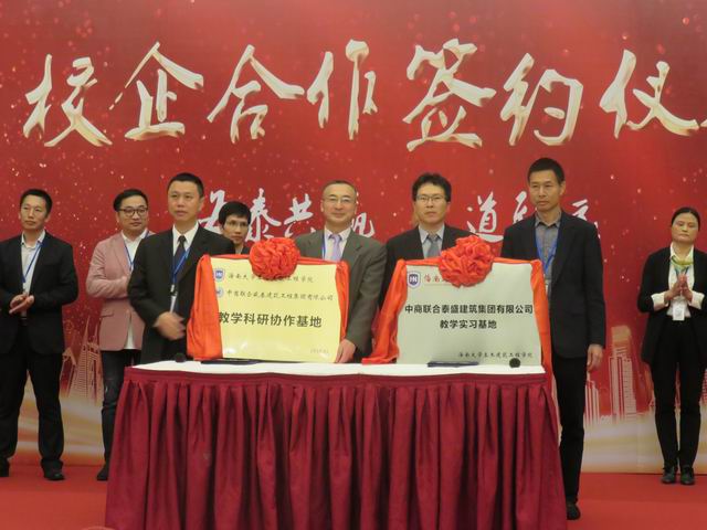 为了充实工程实践教学内涵与增强教师服务社会能力,学院决定与中商联合泰盛建筑集团有限公司缔结院企合作关系,共建“教学科研协作基地”,推进产学研深度结合。1月27日下午,sjb世俱杯官方网站曹宝珠院长与中商联合泰盛建筑集团有限公司陈金才董事长签订校企合作协议。未来土木学院将为泰盛集团提供人才储备和工程项目咨询;同时,泰盛集团可以给土木学院提供教学实习基地和教学科研协作基地。出席本次签约仪式的领导还有卢江海书记、邱宙廷副院长、陈云副院长、罗玲球副书记,以及泰盛集团的相关领导。