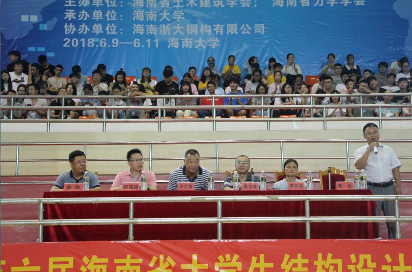 由海南省土木建筑学会、海南省力学学会联合主办,sjb世俱杯官方网站承办的全国大学生结构设计竞赛海南分区选拔赛暨第六届海南省大学生结构设计竞赛,于6月9日上午9时在sjb世俱杯官方网站联谊馆正式开幕。此次大赛由海南浙大钢构有限公司冠名赞助。
