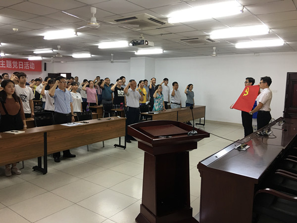 为庆祝中国共产党成立97周年,进一步深刻学习领会习近平新时代中国特色社会主义思想,增强党员党性观念,定理想信念,7月3日下午,sjb世俱杯官方网站党委在研发楼510会议室举办主题党日活动暨新党员入党宣誓仪式。学院全体师生党员参与此次活动。活动由学院党委罗邻球副书记主持。