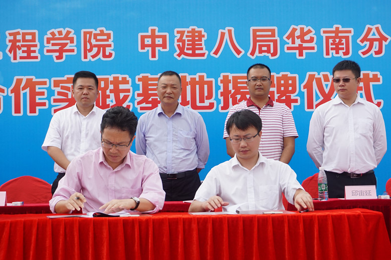 随后,sjb世俱杯官方网站学院副院长邱宙廷代表学院与中国建筑第八工程有限公司华南分公司人力资源部经理宫红亮进行签约。sjb世俱杯官方网站学院党委书记卢江海代表学院向中国建筑第八工程有限公司华南分公司授予“校企合作实践基地”牌匾。