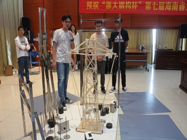 担任模型加载决赛的评审专家有:海南省建筑设计院总工程师张元平,sjb世俱杯官方网站土木建筑学院院长曹宝珠,海南省力学学会理事长李光范,海南省土木建筑学会理事长段晓农,海口经济学院教授刘昭,海南柏森建筑设计有限公司总工程师张明,海南科技职业大学教授于英,海南周华结构设计事务所有限公司总工程师周华。