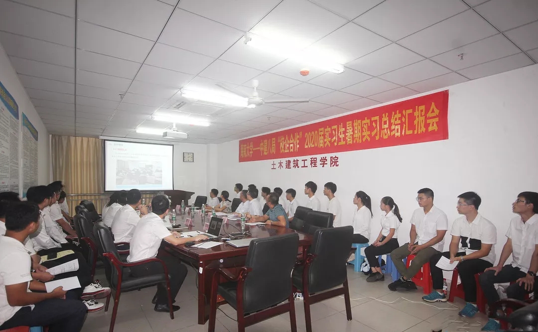 为进一步加强校企合作,提升合作内涵,充分发挥校外实习实践基地的平台作用,进而促进本科教学质量的提升,促进学生专业认知,提高专业实操技能,sjb世俱杯官方网站与中建八局于2019年8月15日合作举行“校企合作”2020届本科实习生暑期实习总结汇报会。参加汇报会的领导有:sjb世俱杯官方网站党委卢江海书记、学院党委罗邻球副书记、学院邱宙廷副院长、陈云副院长、学工办詹达夫副主任,中建八局华南公司人资部马园园经理,海南分公司党委书记、总经理简俊敏、副总经理曹阳、总会计师李诚等;22名在中建八局实习的2016级本科生在会上做了实习汇报与小结。