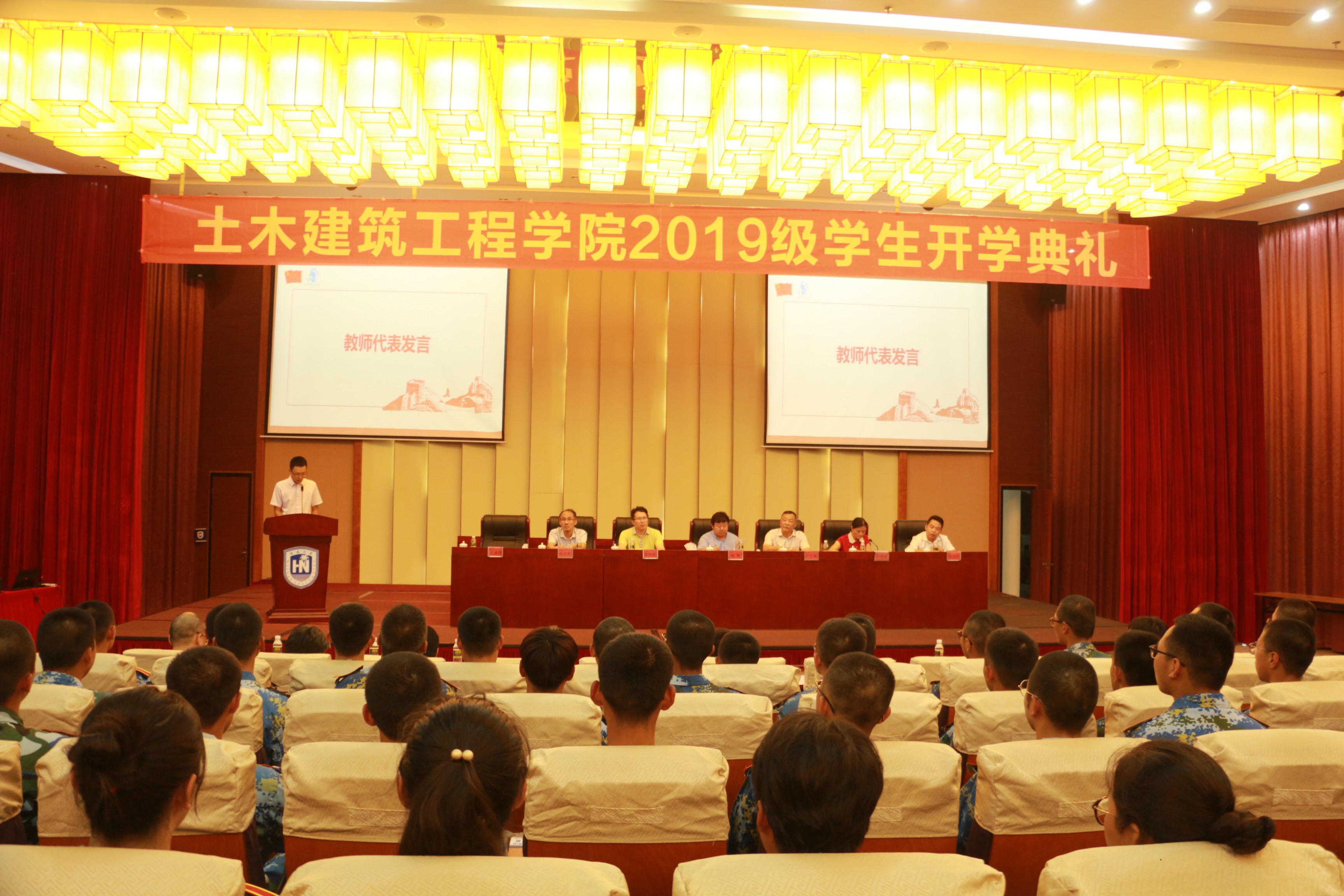 9月12日下午3点,sjb世俱杯官方网站在社科楼二楼报告厅举办2019级新生开学典礼。sjb世俱杯官方网站院长周智、学院党委卢江海书记、副院长邱宙廷、副院长张友良、土木工程系副主任王志佳老师、学院优秀校友现任中国建筑第二工程局有限公司海南分公司党委副书记的陈丕杰、19级新生班主任应邀参加了开学典礼。学工办主任李江俊老师、詹达夫老师、2019级辅导员牛玉老师以及来自全国各地的2019级的353名本科新生和20名研究生新生参加了开学典礼。典礼由学院党委罗邻球副书记主持。