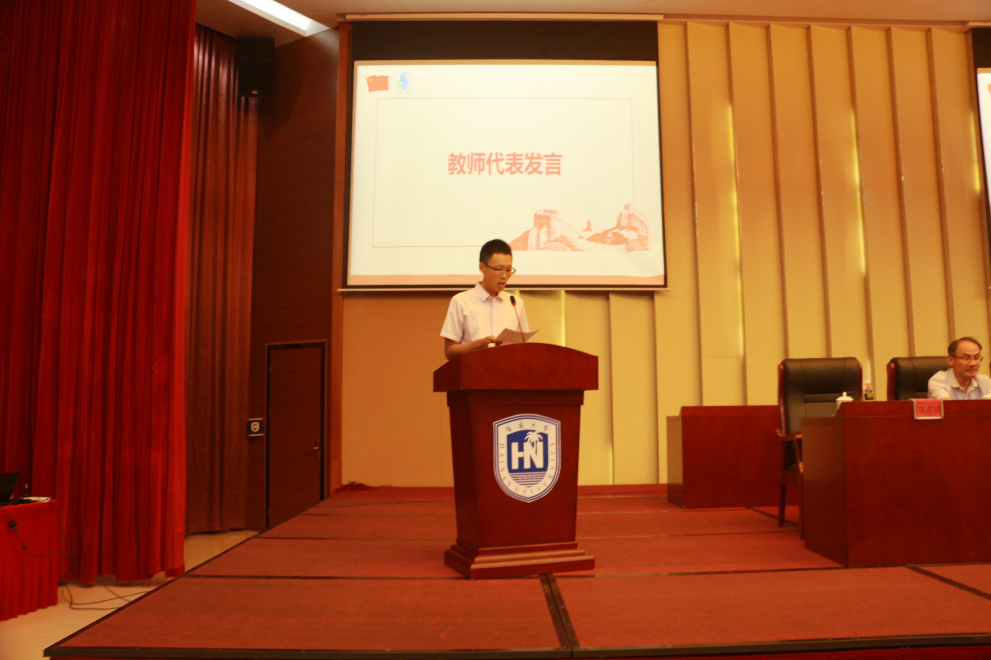 本次会议分为两个阶段,第一阶段为2019级新生开学典礼。伴随嘹亮的国歌声,典礼拉开帷幕。首先,土木工程系副主任王志佳老师作为教师代表发言,凭借朴实的话语和他对大学的理解,建议同学们要敢于直面真实的自己,进入正常的大学生活后,做到每天在寝室的时间不超过11个小时。他也告诫新生们大学生活并不轻松,要做好充分的心理和身体准备。随后,优秀校友陈丕杰用他从雏鹰到雄鹰的艰苦奋斗历程告诉同学们,他今天的成绩与大学时代的认真规划、踏实努力紧密相连。紧接着,在校生优秀代表刘雯恋畅谈了自己对大学和专业的理解和感悟,建议同学们规划好四年或者五年的学习生活,想要取得成功唯有努力行动。2019级新生薛雨露代表全体新生庄重宣誓,必定牢记习近平总书记对青年提出的爱国、励志、求真、力行的要求,承诺:今天学校给我一个机会,明日必还学校一份精彩。最后,周智院长向大家详细介绍了学院的概况及发展思路并表达了对同学们的三点期望:一是培养终身学习习惯;二是培养生活与工作的激情;三是确保人生和底线思维。同时,周院长勉励大家能够正确处理师生关系,共同为学院建设贡献力量。周院长以他诚挚的发言表达了对新生们的关爱,对学院未来发展的美好期望。恰逢新中国成立70周年,在场所有师生以一首《我和我的祖国》共同表达了对祖国母亲的祝福,为新中国70周年华诞献礼。