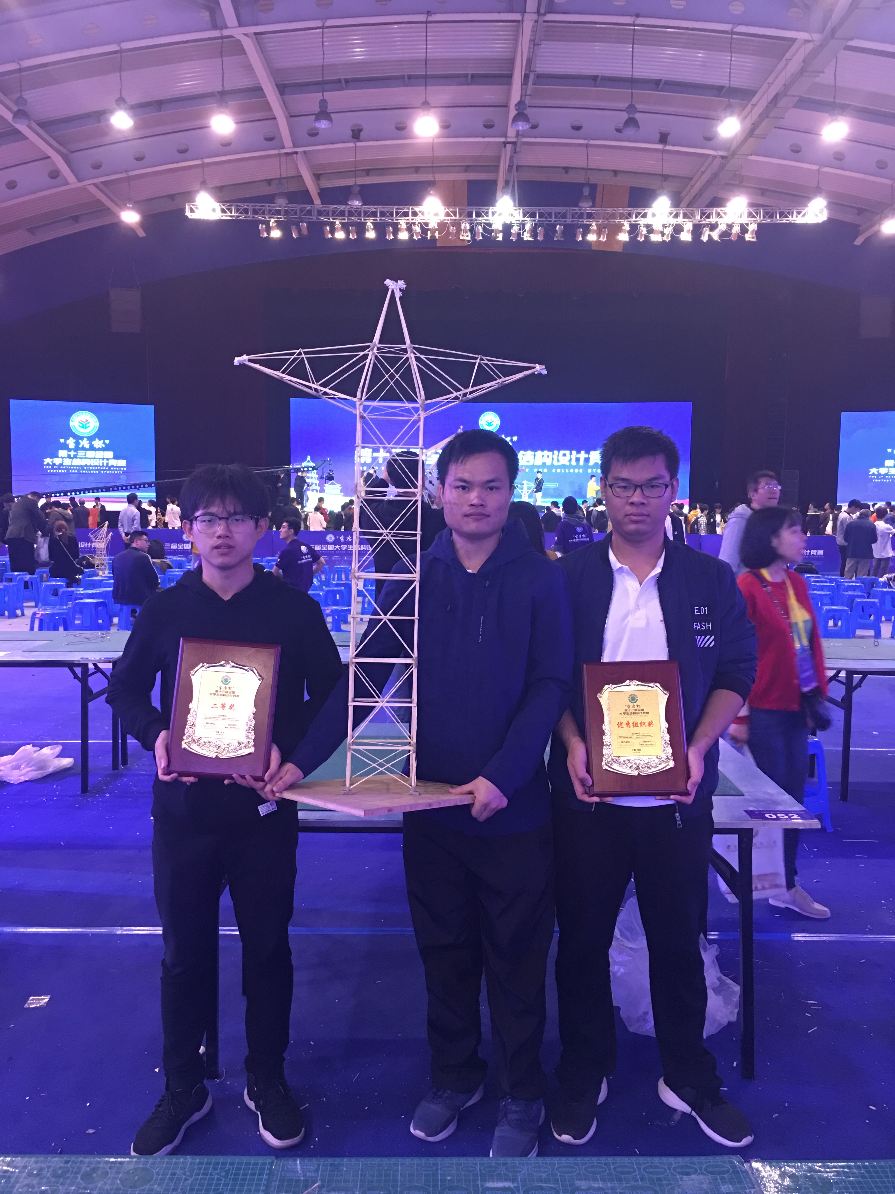 2019年10月16日至21日,第十三届全国大学生结构设计大赛在西安建筑科技大学举办,sjb世俱杯官方网站代表队赴西安建筑科技大学参赛并喜获二等奖。参赛学生队员分别为2016级土木工程专业张钦关、李仲标和周育楷同学,领队为sjb世俱杯官方网站土木工程系杜娟老师,指导教师为曾加东老师和谢朋老师。