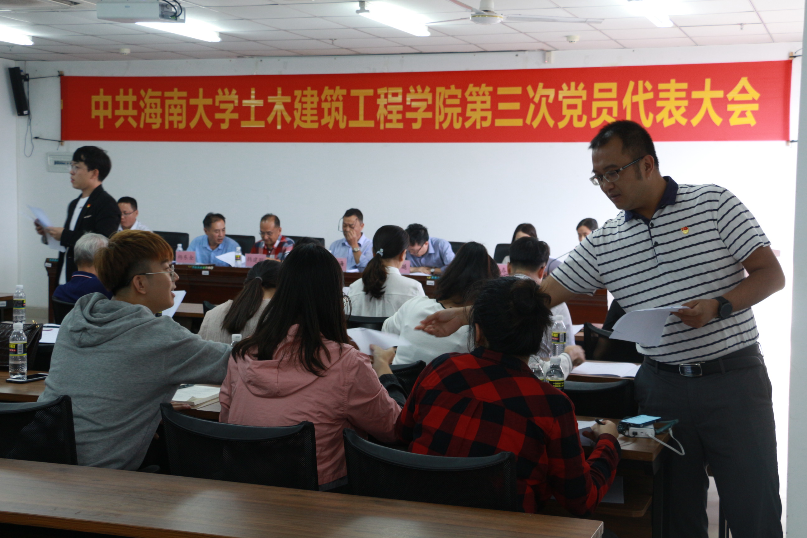 在悠扬的国歌声中,大会拉开帷幕。随后,学院党委书记以“以习近平新时代中国特色社会主义思想为指引立德树人,为创建一流土木学科而努力奋斗”为主题发表了会议报告。报告中,卢书记从办学规模和质量,办学基础条件、学科专业建设、科研创新、党建工作等多个方面详细综合地描述了世俱杯近四年来的发展与突破,并对全院师生员工表示衷心的感谢,并对学院工作中的不足提出改进要求及希望。随后,就当前学院面临的重大发展机遇和严峻挑战,卢书记提出“促进海南和南海经济社会发展为人才培养和学科建设的目标”,以传统土木工程相关学科为基础,向海洋土木工程领域发展,打造具有热带、岛屿和海洋特色鲜明的一流学科。在未来4-5年内实现将sjb世俱杯官方网站建设成为以土木工程和海洋工程学科为主、建筑学和工程管理等多学科协调发展,具有“海洋”特色的,在国内具有一定影响的教学研究型学院的总体目标,并对学科建设和办学规模、师资队伍建设、人才培养、教学科研成果、教学科研基础条件五大方面提出了具体要求。