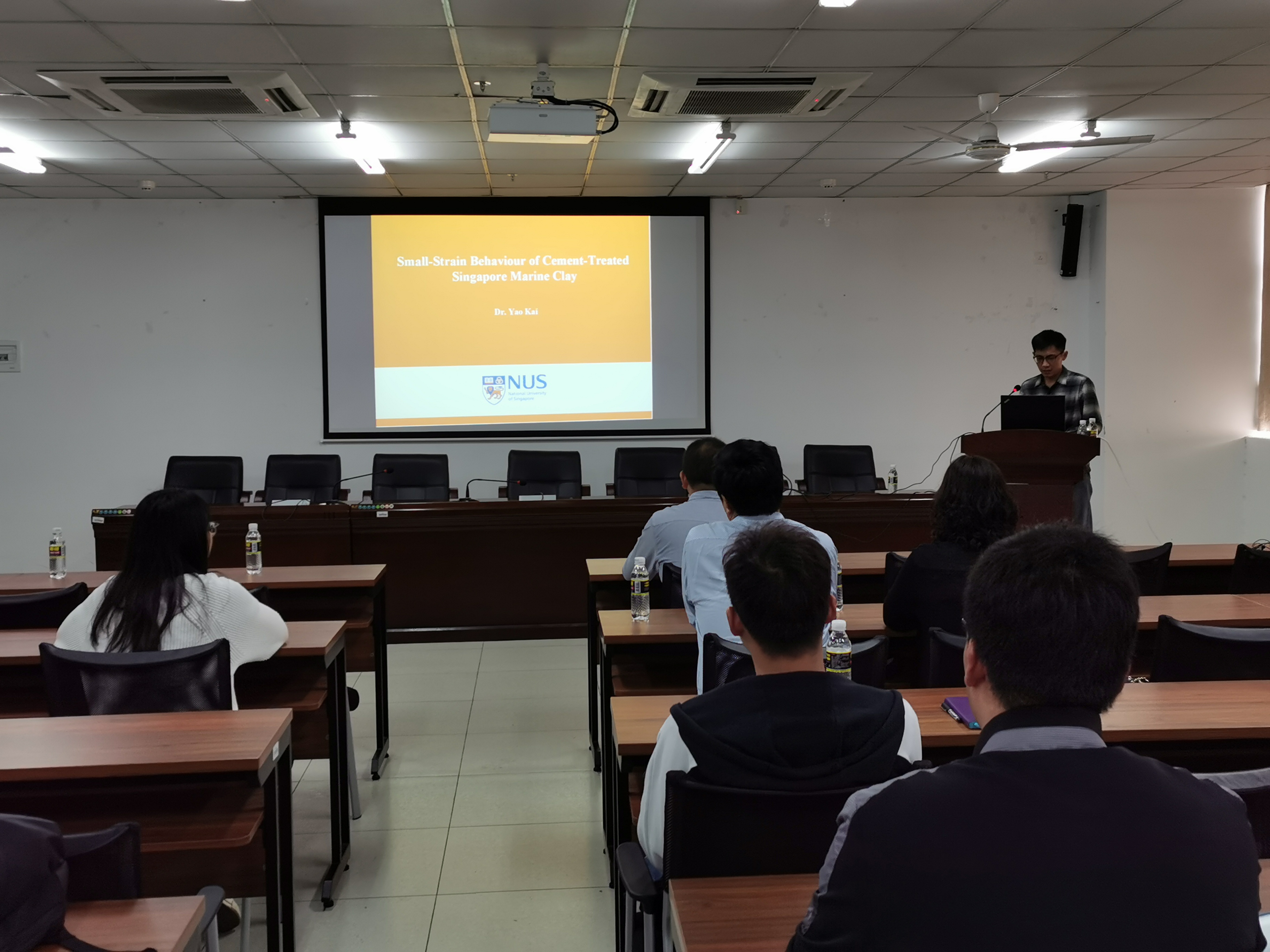 2020年1月4日上午10点,受世俱杯胡俊老师国家自然科学基金项目(51968019)的邀请,新加坡国立大学姚凯博士后研究员到世俱杯作了题为《Small-strain behavior of cement-treated Singapore marine clay》的学术报告。本次学术报告在sjb世俱杯官方网站研发楼510报告厅进行,海南省水文地质工程地质勘察院和海南深勘勘察设计有限公司的相关负责人,以及学院部分教师和研究生参加了此次报告会。