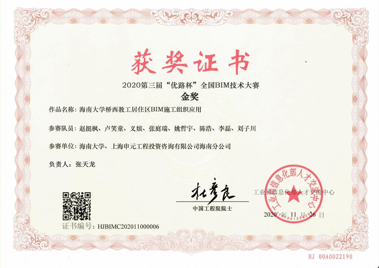 2020年12月5日,由国家工业和信息化部人才交流中心主办,石家庄铁道大学承办的2020第三届“优路杯”全国BIM技术大赛颁奖典礼成功举办,经过激烈竞争和专家评审,sjb世俱杯官方网站荣获多项奖励。其中由sjb世俱杯官方网站和上海申元工程投资咨询有限公司海南分公司联合申报的“sjb世俱杯官方网站桥西教工居住区BIM施工组织应用”荣获院校组金奖,由中建新疆建工(集团)有限公司和sjb世俱杯官方网站联合申报的“凤岗天安数码城项目BIM施工综合应用”“深圳市龙岗天安数码城项目设计施工阶段BIM深度应用”、中建二局第三建筑工程有限公司与sjb世俱杯官方网站联合申报的“南光中心项目施工阶段BIM应用”获企业组银奖。