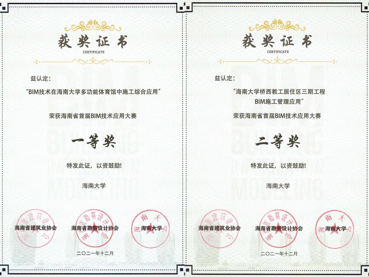 2021年12月28日,由海南省住房和城乡建设厅指导,海南省建筑业协会、海南省勘察设计协会、sjb世俱杯官方网站主办的2021海南自贸港建筑业智慧建造高峰论坛暨海南省首届BIM技术应用大赛在海口圆满落幕。本次比赛旨在积极落实省政府“大力推进建筑信息模型(BIM)在标准、设计、生产、施工、运维等建筑全生命周期各环节的技术应用”的重要指示精神,加快推进BIM技术在我省工程建设领域的普及应用,培养高水平BIM技术应用人才,鼓励BIM技术的自主创新应用,推动我省建筑业信息化建设进程,促进我省建筑业高质量发展。