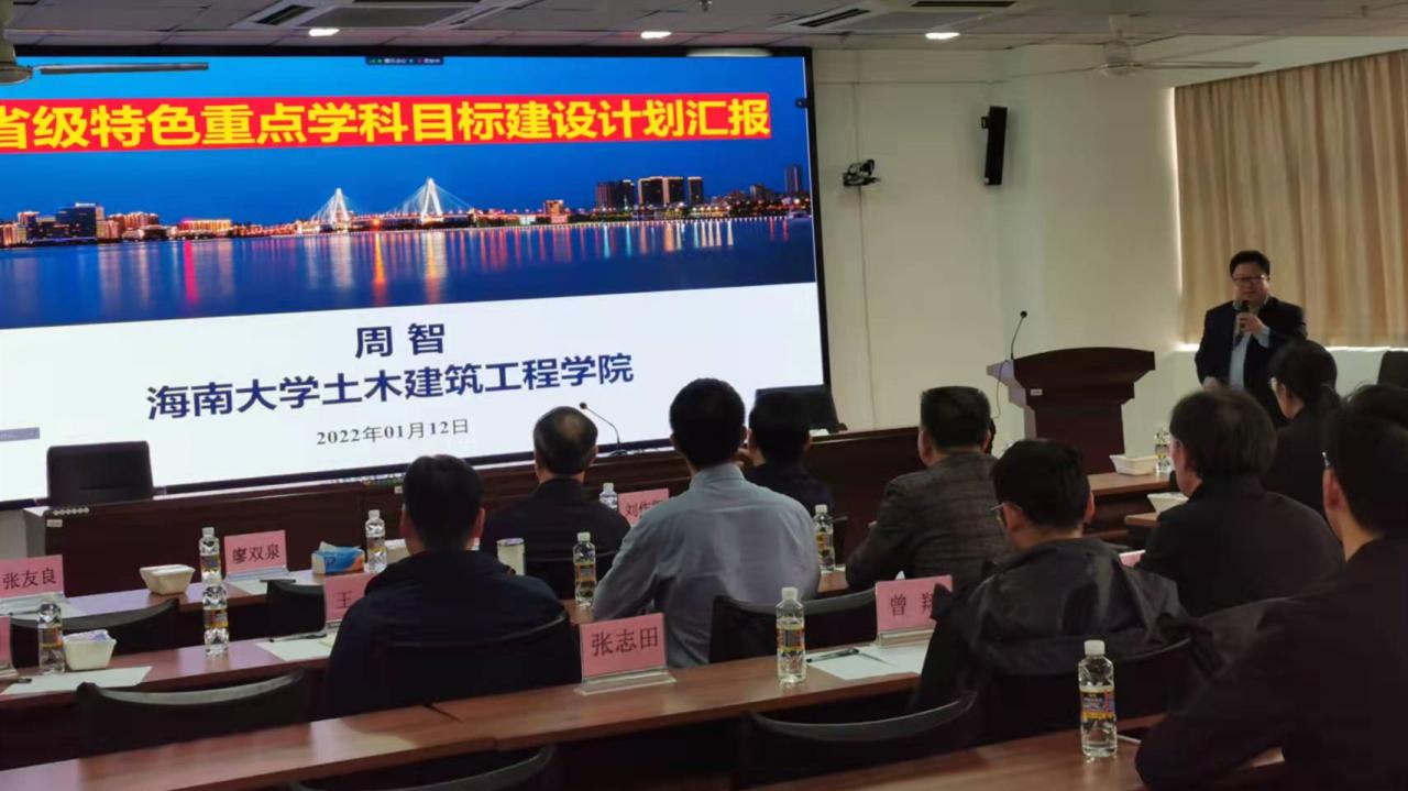 2022年1月12日下午,sjb世俱杯官方网站土木工程省级特色重点学科目标建设评审会在海口市sjb世俱杯官方网站海甸校区研发楼510会议室举行。以中国工程院院士欧进萍教授为组长,日本工程院外籍院士董勤喜教授、日本工程院外籍院士陈飞勇教授、海南省科技厅刘作凯副厅长、海南省住房和城乡建设厅刘联伟副厅长、sjb世俱杯官方网站科技处邹勇华处长、sjb世俱杯官方网站发展规划处赵治乐副处长为成员的专家组出席会议。会议由土木建筑工程学院院长周智教授主持,会议采取线上和线下结合的方式进行。海南大学研究生处处长廖双泉,学院副院长张友良、邱宙廷、田元福,党委副书记孙晓媛,教授韩建刚、曹宝珠、杨东全、刘婉秋、王辉、任兴月等老师参加了会议。