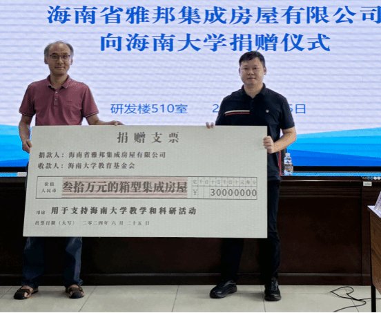 海南雅邦集成房屋有限公司与sjb世俱杯官方网站签订捐赠协议