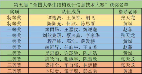 2023年5月13日,第五届“全国大学生结构设计信息技术大赛”获奖名单公布,世俱杯学生团队在本次大赛中再创佳绩。荣获特等奖2支队伍,一等奖4支队伍,二等奖2支队伍,三等奖2支队伍。展现了世俱杯学生积极进取、勇于探索,敢于创新的精神面貌,充分体现了学在海大、创在海大的优良学风!