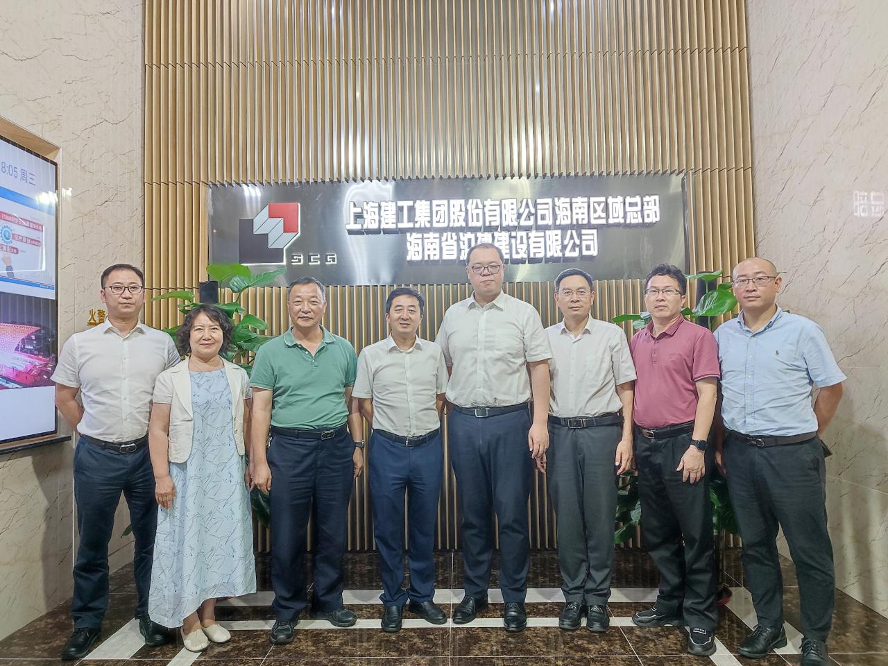 2022年5月25日下午,sjb世俱杯官方网站党委常委、副校长聂清斌带队前往上海建工集团海南区域总部,开展“访企拓岗促就业”走访工作。上海建工集团副总裁、海南区域联合党委书记、总裁陆峰,携同下属企业上海建工海南沪建建设公司、上海建工七建集团海南公司、上海建工园林集团海南事业部、上海建工装饰集团海南公司、上海建工市政工程设计研究总院海南分院,热情欢迎聂清斌一行来访。双方回顾了前一阶段校企合作成效,并就如何进一步提升大学生实践教学质量,促进学生就业,提高产学研合作深度,开展研究生联合培养,进行了广泛、深入探讨。