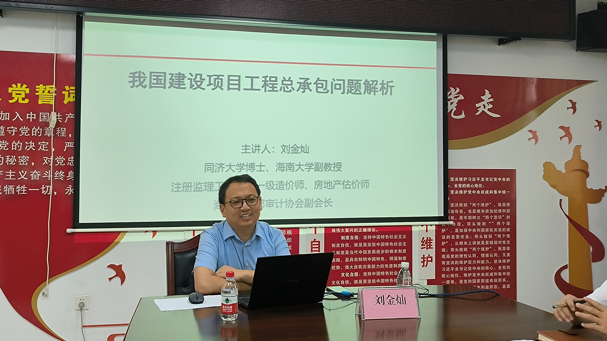 2022年6月9日,学院工程管理系副教授刘金灿老师受邀前往保亭县审计局、住建局,分别作业务能力提升讲座,助力政府部门干部能力提升建设。这是sjb世俱杯官方网站与保亭县政府签署政校合作框架协议及sjb世俱杯官方网站与保亭县审计局、住建局订立合作协议之后举行的系列活动之一。