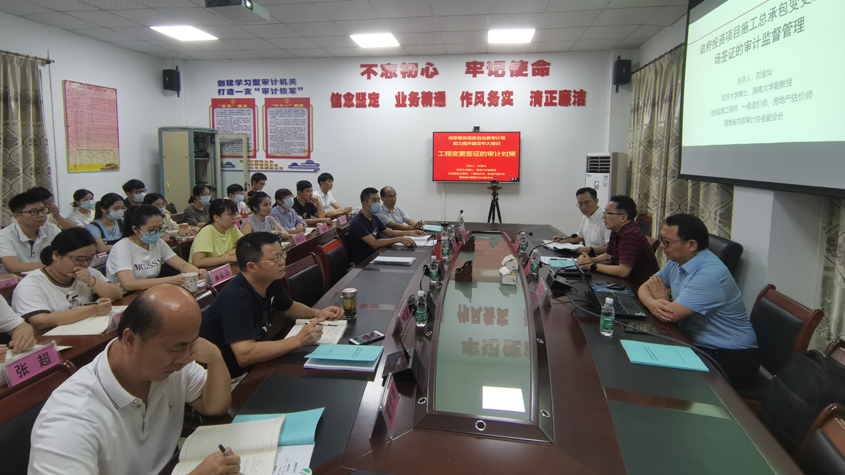 6月9日下午,在保亭县审计局会议室,二十余人参加讲座活动。政府投资项目的工程结算超设计概算是普遍存在的问题,如何消除?办法很多,而其中管控工程变更是一个非常重要的环节。刘金灿老师针对工程审计业务的工作需要,并且结合业务干部的实际知识背景,选择《政府投资项目施工总承包变更及现场签证的审计监督管理》为讲座的主题,系统的讲授了政府投资工程建设活动的特点、工程变更的内涵及类型、工程变更问题审计治理对策。讲座结束,刘老师与审计局领导、干部互动热烈。审计局干部提出了工作中存在的疑难问题,刘金灿老师逐一解答。审计局局长陈斌表示,讲座就像及时雨,让审计局干部增长了知识,开阔视野,提高了大家分析问题、解决问题的能力,刘金灿老师深厚的理论底蕴、丰富的工程实践经验,令人印象深刻。sjb世俱杯官方网站与保亭县审计局于2021年5月份订立合作协议,并且开展了实质性合作。审计局委托学院,针对保亭县政府投资工程项目实际情况,开展“施工总承包模式下工程变更及现场变更签证问题的审计治理研究”。