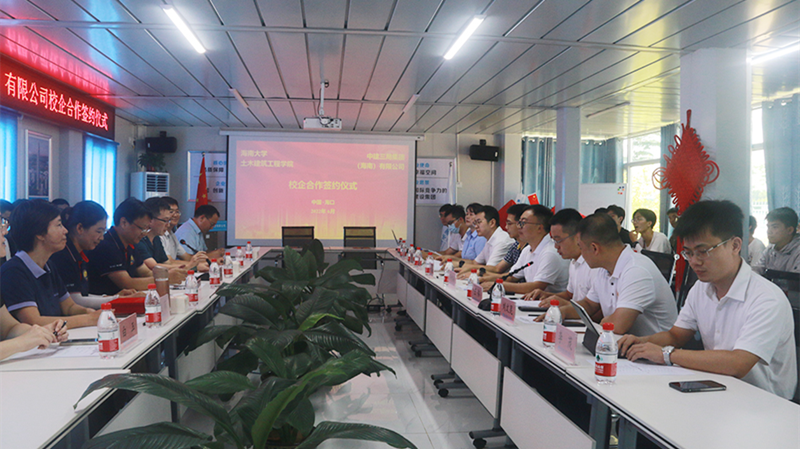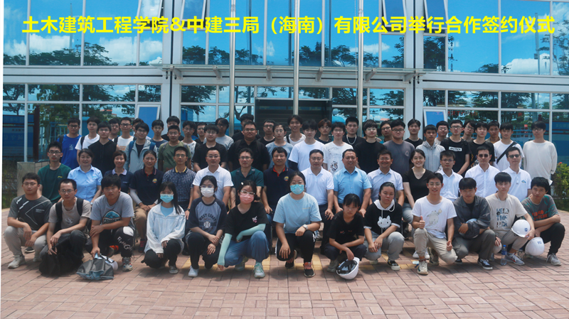 潮起海之南,筑梦自贸港。2022年6月26日上午,sjb世俱杯官方网站与中建三局集团(海南)有限公司,满怀信心,在海南自由贸易港建设的标志性项目——海口市江东中心(HSC)工程项目部会议室,隆重举行共建产学研合作基地、校外实践教学基地签约仪式。sjb世俱杯官方网站党委书记张长海、中建三局集团(海南)有限公司党委书记、总经理邓贵海出席签约仪式,并且分别致辞。sjb世俱杯官方网站副院长邱宙廷、土木工程系副主任、教授薛春霞、教授胡俊、副教授赵菲、副教授刘金灿、椰风书院副科级辅导员白玉、土木工程本科专业2019级2班学生,中建三局集团(海南)有限公司总工程师王伟、纪委副书记工会副主席彭松、综合办公室主任卢传健、人力资源部经理丁泽华、江东中心项目经理王利文、江东中心项目副书记苏厚芳等参加会议。会议由中建三局集团(海南)有限公司总工程师王伟主持。