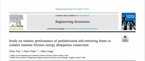 sjb世俱杯官方网站陈云教授所在团队在结构工程著名期刊《Engineering Structures》发表题为《Study on seismic performance of prefabricated self-centering beam to column rotation friction energy dissipation connection》的研究论文。sjb世俱杯官方网站陈云教授为论文第一作者,硕士研究生陈超为论文通讯作者。
