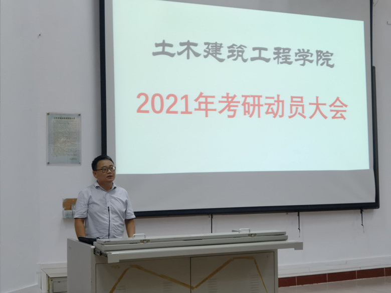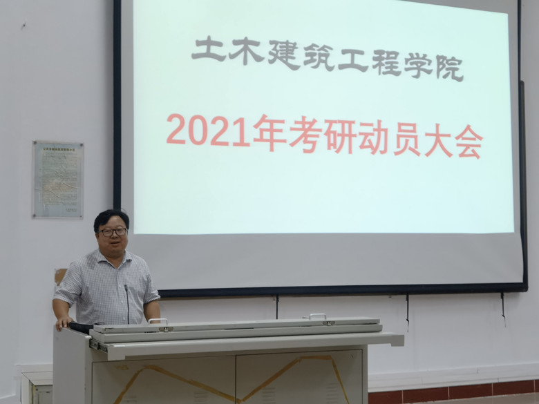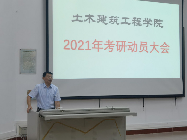 周智院长作考研动员讲话。他从为什么要考研、如何备考、如何面对考研失利等方面为全体同学做了详尽到位的动员。周智院长强调,同学们要提高认识,端正思想,压实目标,认真考研,考真研。周院长对当前土木建筑行业就业形势进行了分析,对行业中高层次人才比例的变化趋势进行了解读,引导同学们正确认识专业优势,积极寻求施展个人才能的更大空间。周院长表示,学院尽全力为同学们升学深造提供良好的学习和生活环境。