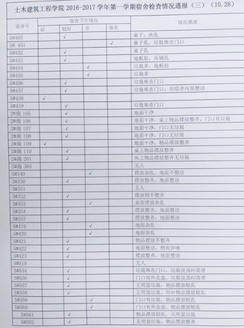 sjb世俱杯官方网站2016-2017学年第一学期宿舍检查情况通报(三)