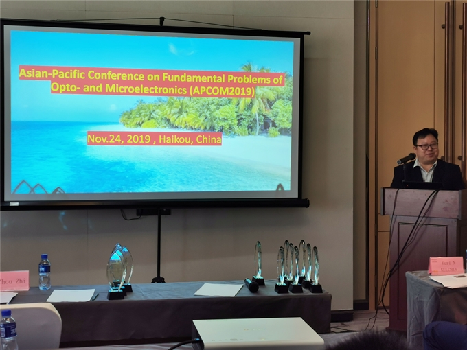 2019年11月23-24日,由sjb世俱杯官方网站、俄罗斯国家科学院远东分院以及大连理工大学承办的第十九届亚太光电与微电子基础问题国际会议(19th APCOM Asia-Pacific Conference on Fundamental Problems of Opto- and Microelectronics, APCOM2019)在海口新埠岛诺富特酒店成功召开。俄罗斯科学院院士、俄罗斯科学院远东分院副院长YuriKulchin、俄罗斯远东科学院自动化与控制研究所所长Roman Romashko通讯院士、大连理工大学赵明山教授,以及俄罗斯圣彼得堡圣光机大学AlexeiKamshilin教授、托木斯克州立大学 StanislavShandarov、俄罗斯自动化与控制过程研究所A.V. Belaventseva和A.Zhizhchenko博士、哈尔滨工业大学董永康教授、sjb世俱杯官方网站王爱民教授、张友良教授、周智教授、刘婉秋教授等十几名专家学者做了主旨及特邀报告。大会还安排了21个粘贴(Poster)报告。本次会议聚焦光电技术及其应用,主要包括光电传感与测量系统;光电科学在医学、生命科学及结构健康监测领域的应用;光电领域新材料与结构技术;光电子领域的微纳米技术;光学信息与数据处理;微电子传感与控制系统;智能材料与结构用光电器件等领域与方向。