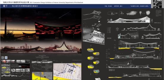 在本次毕业设计——《海口现代艺术馆》命题中,同学们的方案各有千秋,都结合自己对公共建筑的理解,建立起了建筑与城市文脉、地域气候、周边环境的有机联系,设计成果体现出了sjb世俱杯官方网站建筑系学生们扎实的建筑学素养与功底,部分建筑设计方案得到评委老师的一致认可。