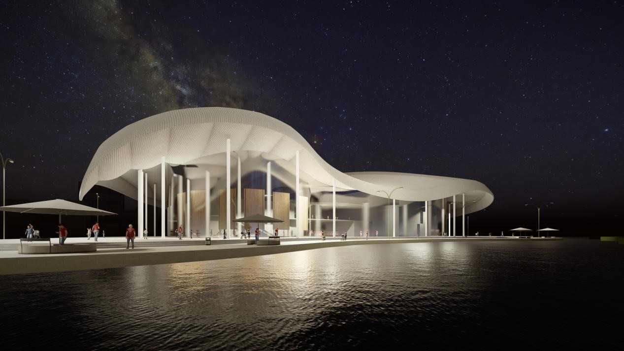 音乐厅像是漂浮在湖上的发光体,它不仅仅是校园名片,更是吸引学生前来活动的场所。这个建筑是一个轻盈通透的发光体,外表皮多用白色,建筑里面的空间除了通高空间还融入绿色庭院,同时建筑周边会设计一个广场来吸引人群,会让夜晚给来往的人们眼前一亮。