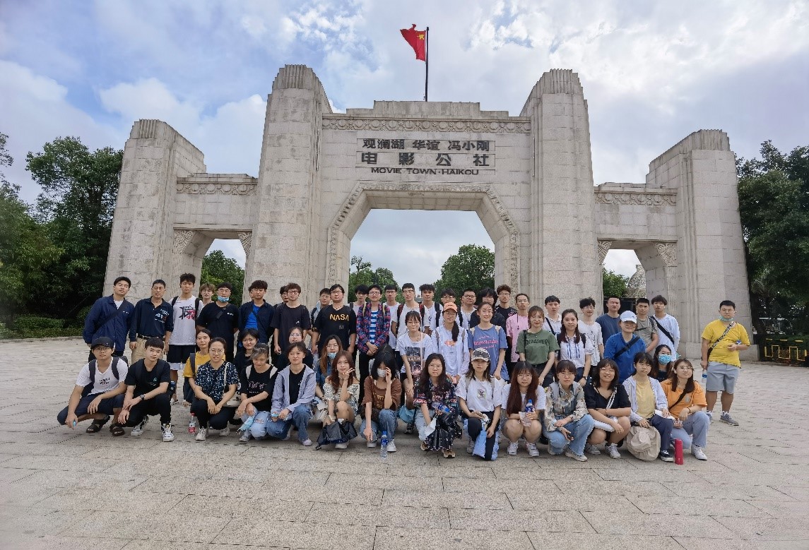 冯小刚电影公社,位于海南省海口市龙华区,始建于2011年,由1942街、南洋区、老北京街等多余处影视拍摄景观组成,占地面积93万平方米,是以民国时期文化为背景的仿古建筑群。1942集合了20世纪30-40代长江流域重庆、武汉、南京、上海等地典型的建筑风情,共91栋建筑,其中20多栋建筑完全按照老照片复原,包括曾为蒋介石官邸的尧庐、西山钟楼、重庆国泰戏院、上海融光大戏院等。南洋街是海口当地的骑楼建筑为蓝本,集合了中外建筑风格的南洋风情建筑,点有牌坊、码头、钟楼、小桥等。老北京街呈现了北京的民俗景象,尤其是四合院引起了同学们的特别关注。潘鄱老师细心的给同学讲各种建筑类型的设计方法,包括平面设计、立面设计、建筑装饰和建筑细部构造等方面。