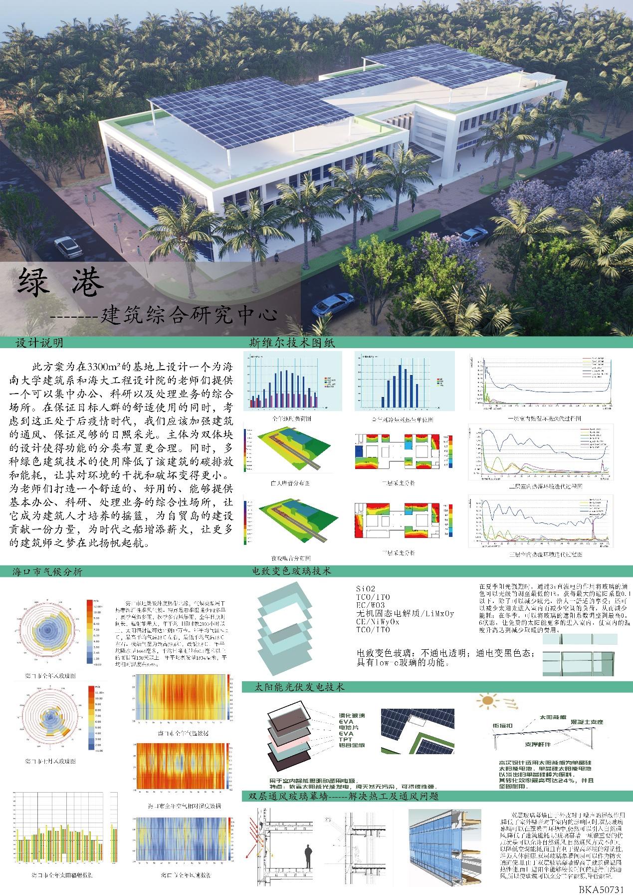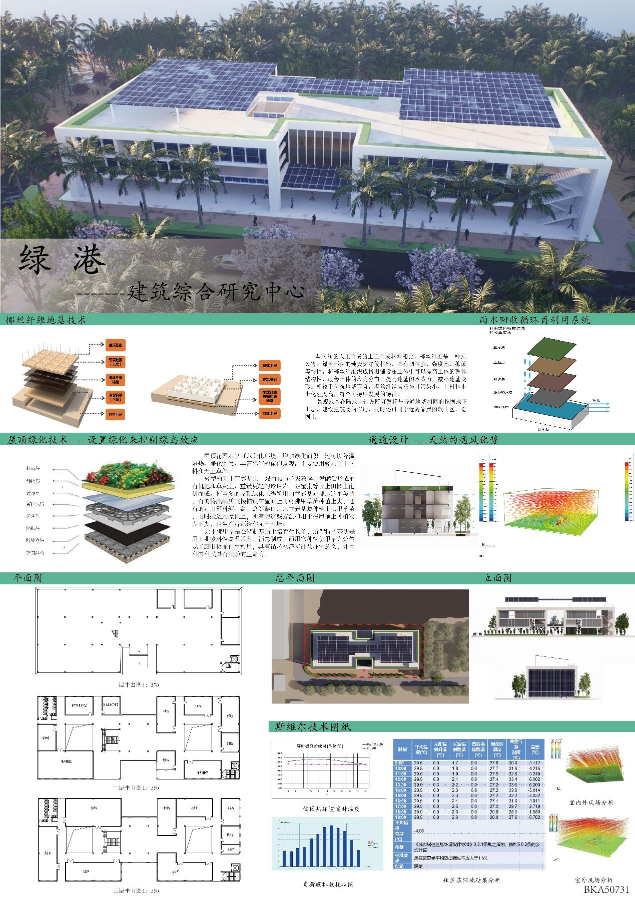 三等奖作品绿港——建筑综合研究中心,此方案是在3300㎡的基地上拟建一个可以为sjb世俱杯官方网站建筑系和海大工程设计院的老师们提供集中办公、科研以及处理业务的综合场所。在保证目标人群的舒适使用的同时,考虑到这正处于后疫情时代,应该加强建筑的通风、保证足够的日照采光。主体为双体块的设计使得功能的分类布置更合理。同时,多种绿色建筑技术的使用降低了该建筑的碳排放和能耗,让其对环境的干扰和破坏变得更小。为老师们打造一个舒适的、好用的、能够提供基本办公、科研、处理业务的综合性场所,让它成为建筑人才培养的摇篮,为自贸岛的建设贡献一份力量,为时代之船增添薪火,让更多的建筑师之梦在此扬帆起航。