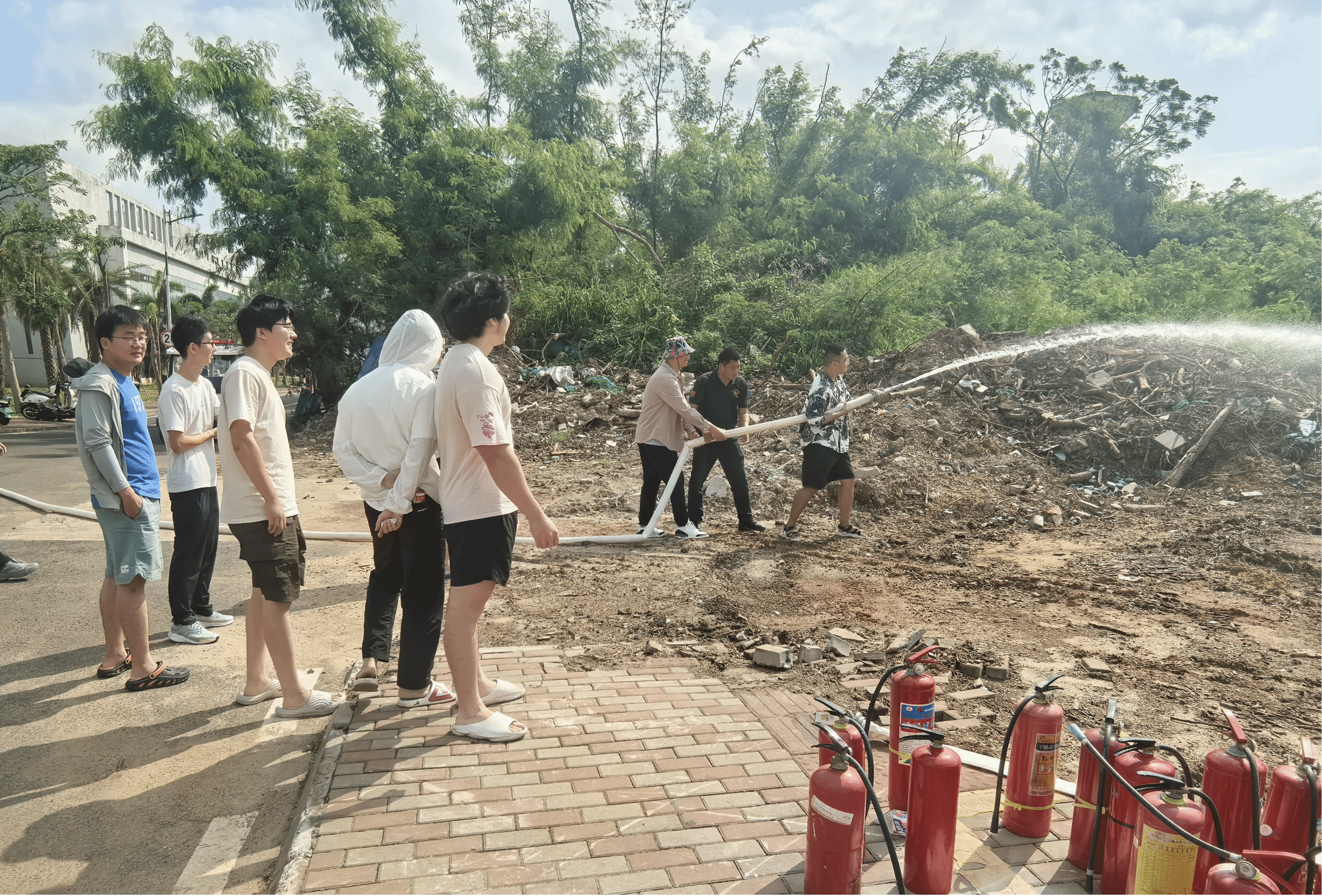 在消防实操演练环节,学校保卫处的林德鑫老师现场演示了消防自救呼吸器、灭火器、消防栓等消防器材的正确使用方法,并组织研究生们进行实际操作,让大家在实践中掌握了基本消防应急技能。