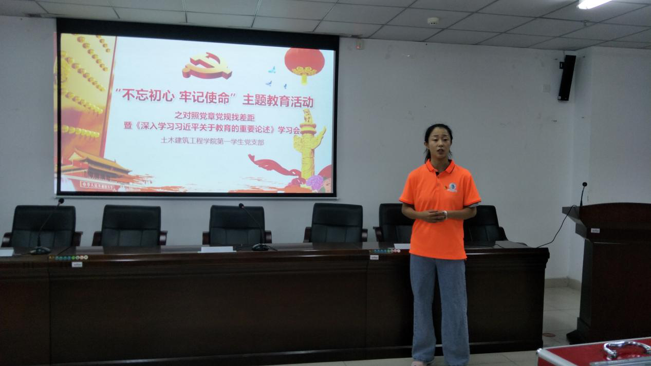 2019年10月11日晚上,sjb世俱杯官方网站第一学生党支部在研发楼510会议室召开对照党章党规找差距暨《深入学习习近平总书记关于教育的重要论述》学习会。支部副书记白玉同志,支部全体学生党员参会,组织委员吴姮璇同志主持会议。