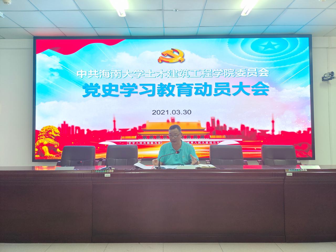 学院党委宣传委员、副院长邱宙廷给全体党员传达了习近平总书记在党史学习教育动员大会上的重要讲话精神,并就党史学习教育的背景、意义、目标、内容、要求等五个方面做了学习解读。