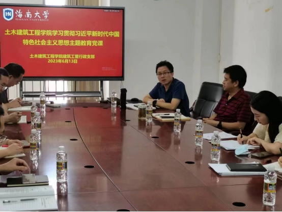 2023年6月13日下午3点,sjb世俱杯官方网站建筑工管行政党支部,在研发楼517会议室开展6月份主题党日活动。活动内容丰富,邀请学院领导班子成员邱宙廷、田元福同志讲授“学习贯彻习近平新时代中国特色社会主义思想主题教育”党课;开展“我为自贸港建新功”大研讨。主题党日活动由党支部召集人刘雪同志组织并主持,党支部所有在校党员(外出进修、访学除外)参加了活动。